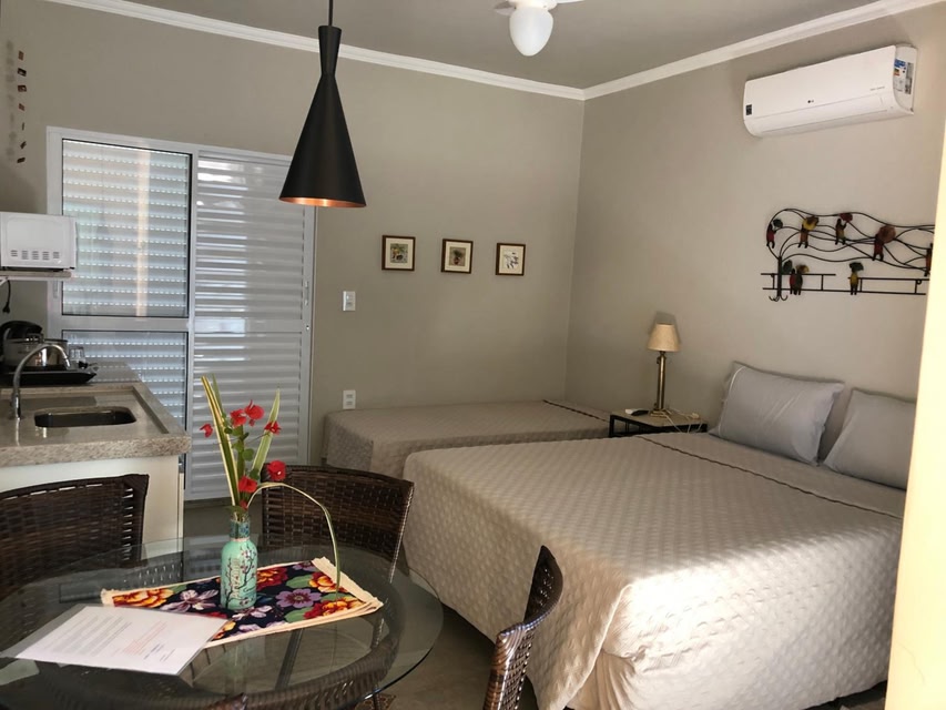 Featuring air-conditioned accommodation with a private pool, pool view and a balcony, Flats Naturando's is located in Buritama. The property features garden and inner courtyard views.