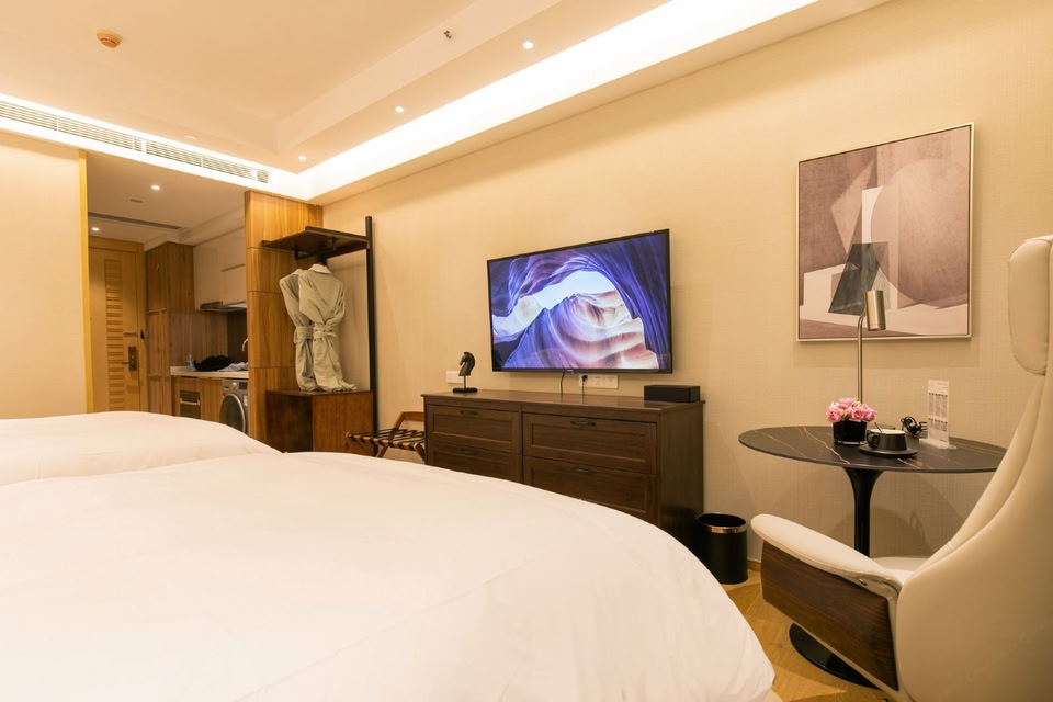 Location Looking for a home comfort: apartment «Fengyu International Apartment (Shenzhen Luohu Shuibei Jewelry City)» is located in Shenzhen. This apartment is located in 8 km from the city center. You can take a walk and explore the neighbourhood area of the apartment — Shenzhen Convention & Exhibition Center (SZCEC), Shenzhen People's Park and SIAT.At the apartment Spend an evening in a nice atmosphere of the bar. If you travel by car, there’s a parking zone. You won’t be bored as at the apartment you will find a library. Accessible for guests with disabilities: the elevator helps them to go to the highest floors. There are other services available for the guests of the apartment. For example, a laundry, an ATM and a concierge.Room amenities Here’s what you’ll find in the room to have a rest after a long day: a mini-bar and slippers. The room equipment depends on its category.
