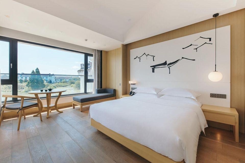 Xitang Muyue hotel is located at the entrance of Xitang ancient town, West side of scenic tourist center (No. 368 Nanyuan Road) , east side of scenic area Wuguniang Park. Muyue hotel is a modern chinese-style Jiangnan water village building with pink walls and Daiwa, which is integrated with the architectural style of Xitang ancient town. The hotel has 58 simple and exquisite guestrooms with 80% of the guestrooms facing the lake and enjoying the outdoor activity space. The guestrooms on the first floor have more than 20 square meters of outdoor courtyard water-friendly, and the guestrooms on the second floor have balcony water-viewing, the third floor balcony guest room has more than 30 square meters outdoor terrace. The hotel has convenient transportation, a large underground parking lot, after the guests check in, the hotel provides free shuttle service, in addition, also equipped with all-day restaurant, VIP dining room, multi-functional hall (small meeting, catering) , lobby bar and other ancillary facilities.