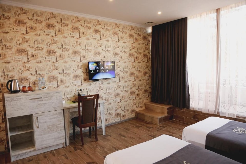 Situated in Kutaisi, 600 metres from Colchis Fountain, Hotel King David The Builder features accommodation with a garden, free private parking, a shared lounge and a terrace. The property has a bar, as well as a restaurant serving European cuisine. The accommodation offers a 24-hour front desk, airport transfers, room service and free WiFi throughout the property. The rooms are fitted with air conditioning, a flat-screen TV with satellite channels, a fridge, a kettle, a bidet, free toiletries and a desk. With a private bathroom fitted with a shower and a hairdryer, some rooms at the hotel also boast a city view. At Hotel King David The Builder rooms include bed linen and towels. Guests at the accommodation can enjoy a buffet or a continental breakfast. Popular points of interest near Hotel King David The Builder include White Bridge, Kutaisi Train Station and Bagrati Cathedral. The nearest airport is Kutaisi International Airport, 35 km from the hotel.
