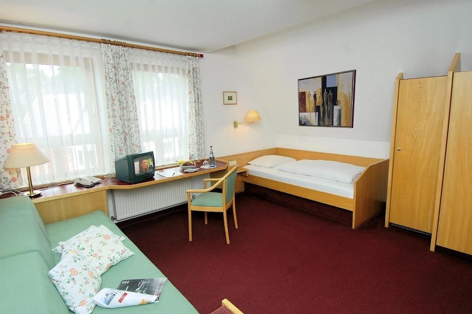 Amenities and FeaturesEnjoy breathtaking views from the terrace overlooking Schönbuch Nature Park. Take advantage of complimentary wireless internet and shop onsite for souvenirs. Indulge in delicious meals at Landgasthof Rössle or opt for room service. Relax with a drink at the bar/lounge, and start your day with a buffet breakfast from 6:30 AM to 10 AM.Services and EventsBenefit from services like complimentary newspapers, dry cleaning, and multilingual staff. Host events in one of the hotel's three meeting rooms. The 3-star property offers free onsite parking for guests' convenience.Room ComfortsStay in one of the 29 guestrooms with flat-screen TVs, free Wi-Fi, and cable programming. Pamper yourself in private bathrooms with complimentary toiletries and hairdryers. Additional amenities include safes, phones, and complimentary bottled water.Embark on a memorable stay at Landgasthof Hotel Rössle in Waldenbuch, perfectly located near various attractions and the airport for convenience. Secure your stay now!