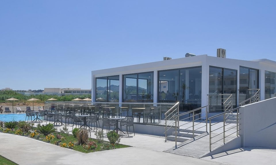 Evita Bay is a newly built, 4-star, all-inclusive hotel in Rhodes, Greece. Located on a pristine beach in Faliraki, it's just 1. 5 km from the lively town center, offering shopping, markets, and vibrant nightlife. With spectacular views and steps from the sunny beach, Evita Bay offers authentic Greek hospitality. Opened in May 2019, the hotel features 145 spacious, minimally styled rooms, some with shared pools. All rooms include air conditioning, a refrigerator, a 32' satellite TV, a hairdryer, a shower and WC, a safety deposit box, and a balcony or terrace.