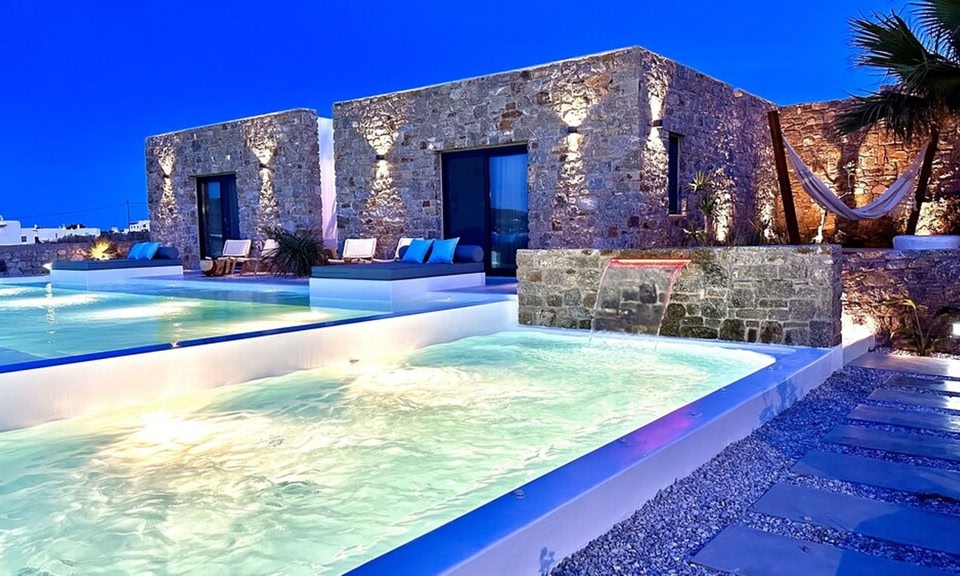 Boasting pool views, Myconian Theros Luxury Suites features accommodation with balcony, around 2.9 km from Kalo Livadi Beach. This property offers access to a terrace and free private parking. The infinity pool features a pool bar and water slide.