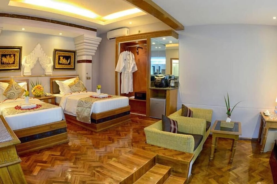 Located in Monywa, Shwe Taung Tan Hotel Lake View is connected to the convention center. Shwezigon Pagoda and Thanboddhay Pagoda are two other places to visit that come recommended. Take an opportunity to explore the area for outdoor excitement like hiking/biking trails. Central hotel with free parking connected to the convention center in MonywaThis hotel features an outdoor pool, a restaurant, and a fitness center. Free WiFi in public areas and free self parking are also provided. Other amenities include a bar/lounge, a snack bar/deli, and a business center. Shwe Taung Tan Hotel Lake View offers 32 air-conditioned accommodations with minibars and safes. Rooms open to balconies. A pillow menu is available. 48-inch flat-screen televisions come with cable channels. Guests can make use of the in-room refrigerators and coffee/tea makers. Bathrooms include shower/tub combinations with deep soaking bathtubs and rainfall showerheads. Bathrooms are also outfitted with bathrobes, slippers, and bidets. Guests can surf the web using the complimentary wireless Internet access. Business-friendly amenities include desks and phones. Additionally, rooms include complimentary bottled water and hair dryers. Housekeeping is provided daily. An outdoor pool and a children's pool are on site. Other recreational amenities include a fitness center. The recreational activities listed below are available either on site or nearby; fees may apply.