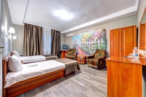 This hotel is located at the edge of Goloseevskiy Park and 500 metres from the National Exhibition Center. It features a tour desk, spacious rooms with balconies, cable TV channels and a work desk.