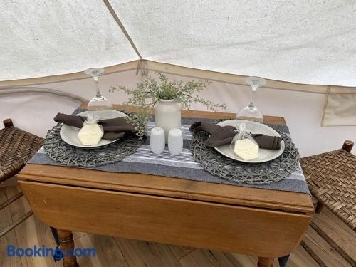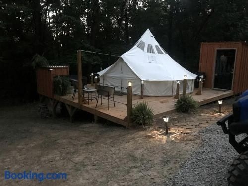 Located in Victor in the West Virginia region, A Truly Glamping Experience in this Beautiful Tent in Victor, West Virginia features a patio. A hot tub is available for guests. Towels and bed linen are provided in the luxury tent.